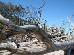 Tr: We came up with "Over Rated" around the same time. Two of the last songs were written and recorded toward the end of the Florida sessions. They were "Alabama Free" and "Crash and Dash". The former was the last song written and recorded by Tc. It originally had a working title as "23", since it was the 23rd song we recorded in the IYF sessions. Both songs we're warm up jams where I hit the record button without anyone knowing. After the first take of Crash, I asked the guys to do it one more time for the tape. Gary groaned and was very reluctant to add another song to our ever growing list. They did it, though, and that second take is the one on the cd (except the funky middle 4 which was from the original take). We were about half way through recording the song when I realized we never talked about an ending. So I did my mad Lawrence Welk at the end and directed Gary through that big rock'n'roll ending, with John following right through. Then John said the song was called "Crash and Dash". He pointed at Gary and myself and said "You're Crash and You're Dash". GF: That said, it wouldn't have been written without us having wrecks and risking our lives for TC. We went above and beyond on that one. Tr: We showed them our all! JK: Now I've heard everything! (more laughter) Tr: Yes, Gary and I lost our cars exactly one week apart. I replaced my departed Z28 with a red Firebird. It can be heard in the middle of the song racing along the highway. My family and I ended up naming it "Dash". JK: "Try it Again" goes way back to the SOL beginning GF: I wrote that for John when he was getting back together with Julie. No wait, John stole that song from me! No, I gave it to him. JK: I'm not believing I'm hearing this! (again with the laughter) Tr: They played this song to me last year from an old tape. I didn't remember ever hearing it before yet there I was playing on it. I was there at least physically. It mellowed out a bit in the final recording. A great song. Strange it was forgotten for so long. JK: "I'm a Fish" goes back to a night. Tr: A dark night. JK: A dark and stormy night. GF: It wouldn't have happened if Tim didn't want a Swan song. One of the many from the old days. JK: One of the most appealing to me was "Trouble Clef". Tim said to sing it the way Jimmy Dean sang "Big John". That style worked! GF: In the end, we're symbols (much eye rolling from band and cynical laughter) Tr: That song is actually a biography of the band, including many references. Each little phrase has a meaning. "We're Symbols" ("Cymbals?") refers to the time of our first gig, when our original bass player announced to the audience "We're Symbols! Thank you for coming!" and "Watch out for that tree" refers to the big tree near John's driveway that at least two or three band members had backed into.